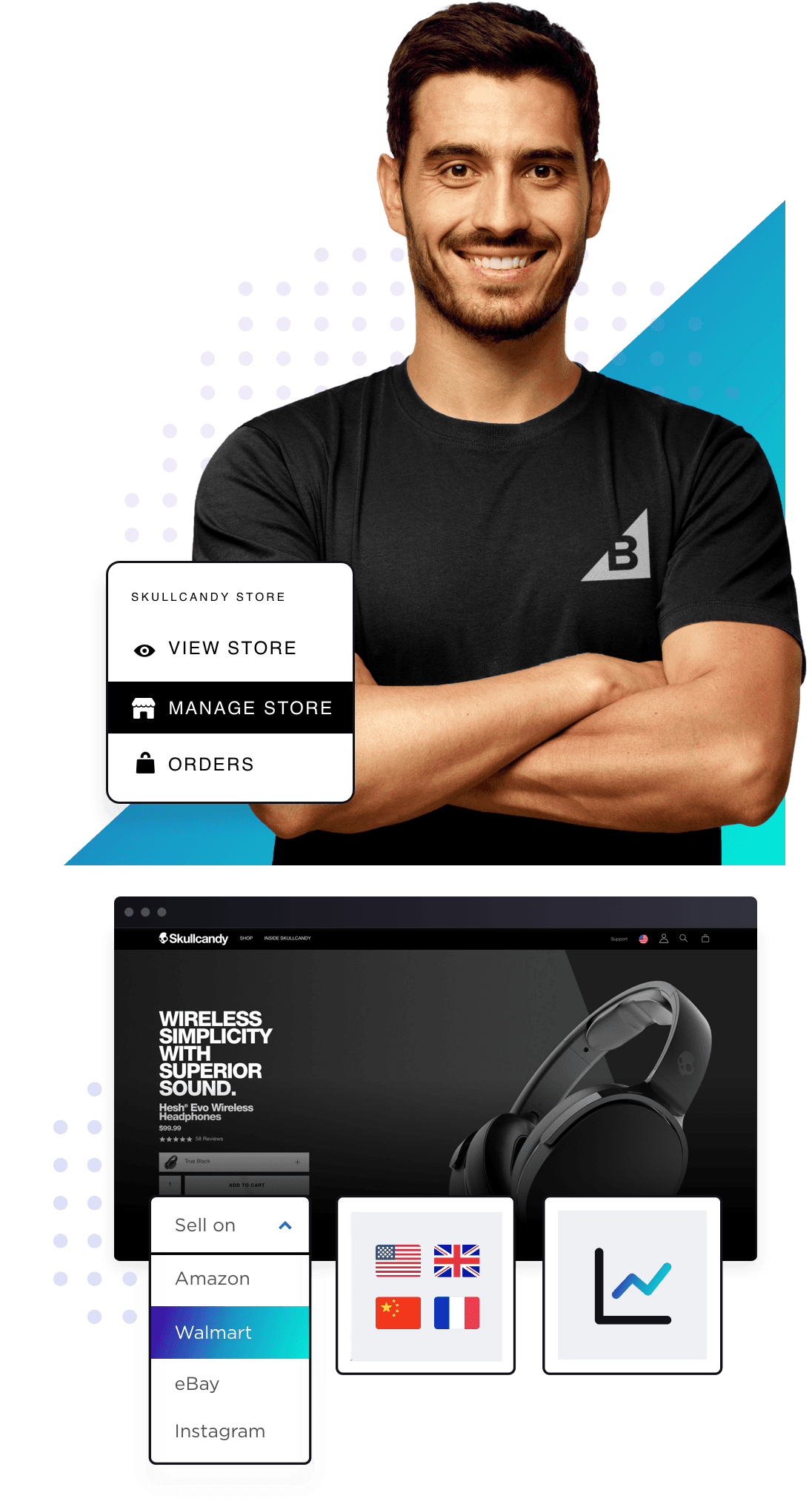 Ecommerce takes a village. We’re here to help with 24/7 live support, growth coaches and guides, plus all of our built-in apps and tools.
