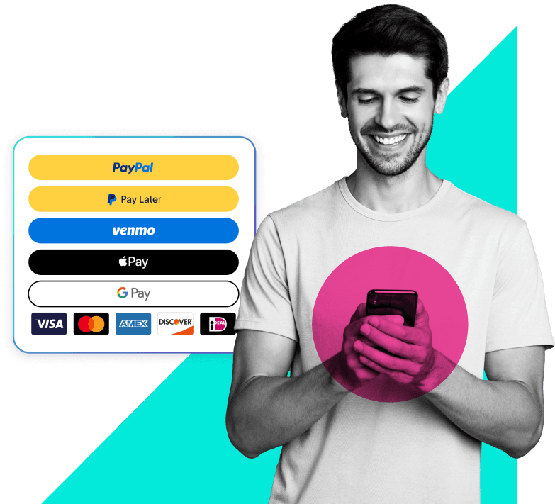 PayPal’s brand recognition helps give customers the confidence to buy. Your all-in-one checkout solution comes with PayPal, Pay in 3, Venmo (US only), and more. And it can easily be added to your existing checkout solution.