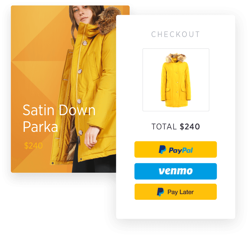 The PayPal Checkout experience turns a multi-screen checkout process into a payment lane that works seamlessly on almost any device — smartphone, tablet or desktop. With PayPal Checkout, customers can avoid entering billing and shipping information — delivering a quick, easy and secure shopping experience.