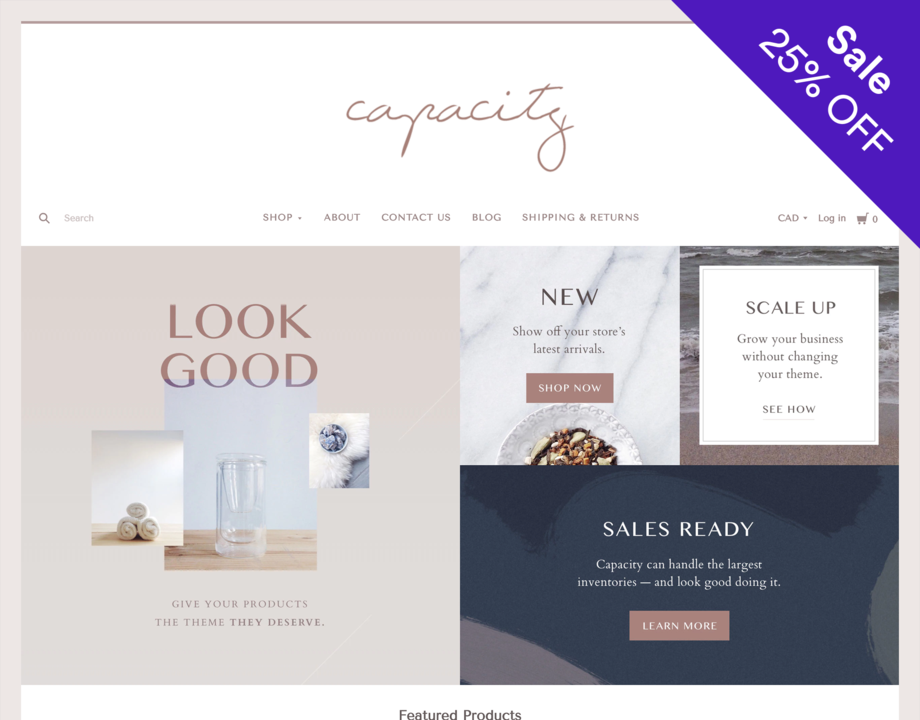 Capacity sets a new standard for ecommerce navigation and search functionality. With its customizable mega-navigation, robust product filtering, and unique modular slideshow area, Capacity is powerful enough to handle the largest inventories—and look good doing it.