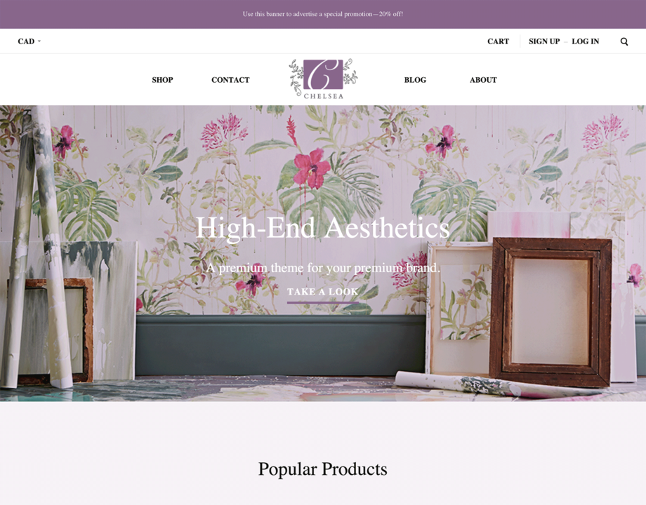Chelsea helps you create the perfect online lookbook. Its large imagery and elegant typography let your products tell the story, while making your customers feel like they’ve walked into a high-end boutique. Whether you’re selling clothing, jewelry, or health and beauty products, Chelsea is the perfect home for your premium lifestyle brand.