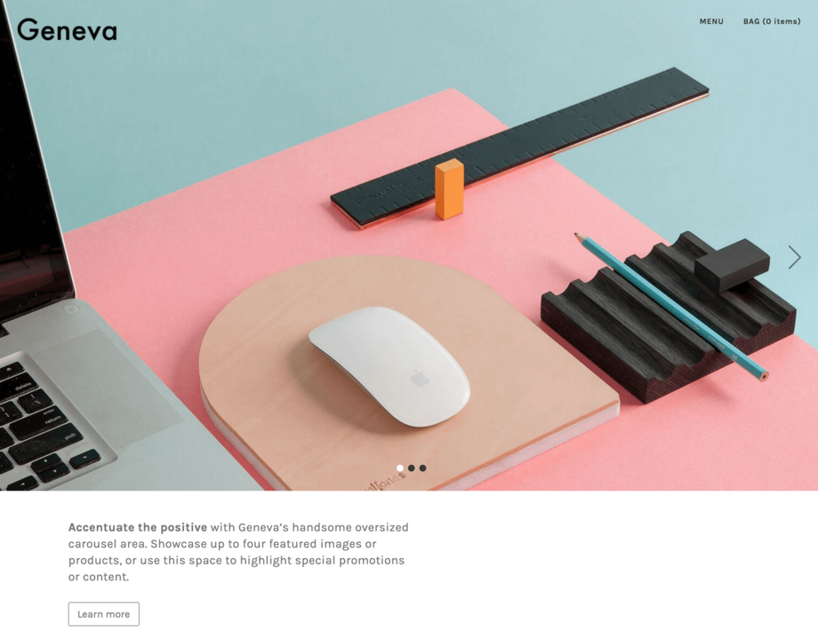 Geneva is a striking and contemporary theme designed to showcase top-shelf products and curated boutique collections. With its editorial look and feel, long scroll feature, and focus on large, high-resolution images, Geneva lets your products tell your brand's story in arresting detail.