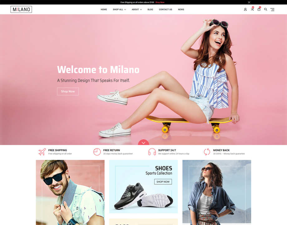 A fully-responsive BigCommerce Stencil theme, Milano is loaded with advanced features for stunning editorial commerce. Showcase your products in a unique visual way with features like scrollable slideshows, highlighted product sections, blog grid display, social feeds and much more.
